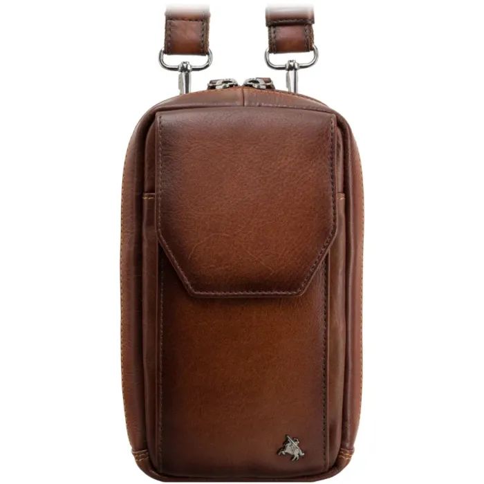 Сумка изготовлена из натуральной кожи с матовой фактурой и оснащена одним основным отделением на молнии. Внутри предусмотрен отдельный карман для телефона, обеспечивающий безопасное хранение гаджета. Лёгкий формат и регулируемый ремень позволяют носить сумку через плечо, оставляя руки свободными.