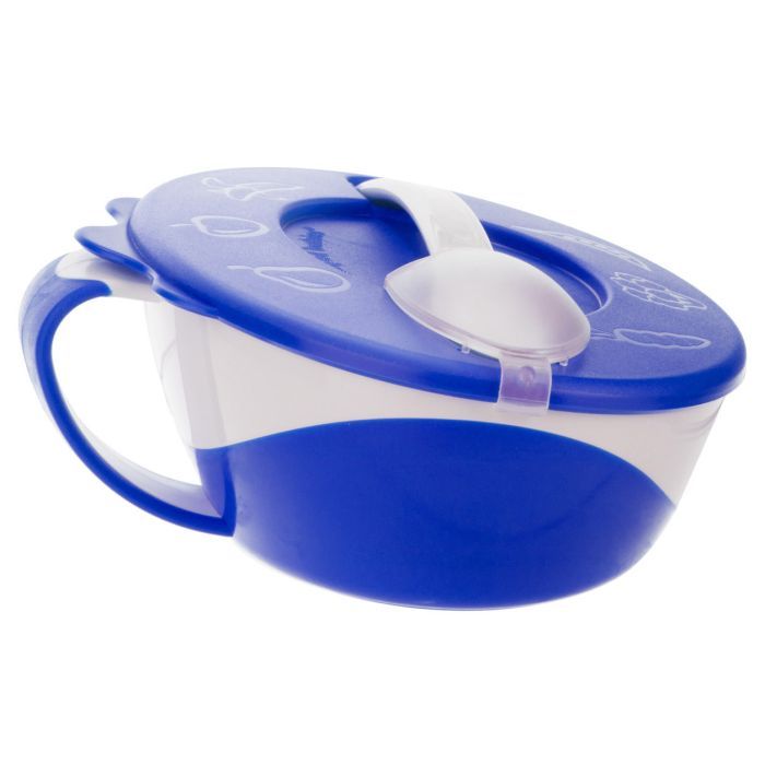 Эта тарелочка незаменимый помощник в хозяйстве для всех мам, у которых есть малыши. Плотная крышка поможет поддержать температуру пищи. А с помощью ручки вы можете держать тарелочку в одной руке, а ложку — в другой. Имеет прорезиненное дно. Ложечка имеет слегка округленную форму, чтобы защитить нежные десна ребенка от раздражения.