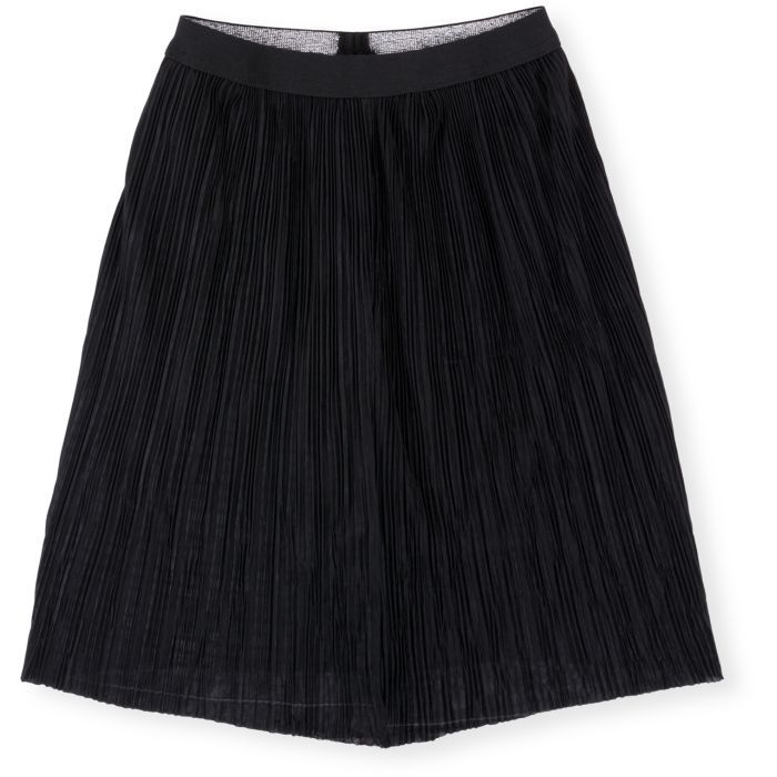 Тонкая, лёгкая плиссированная юбочка ( мелкая плиссировка) чёрного цвета на подкладке. Сшита из гладкой, стрейчевой плиссированной ткани на эластичном поясе-резинке. Подкладка – из хлопкового трикотажа. Линия низа отрезная, без подгибки и обработки.