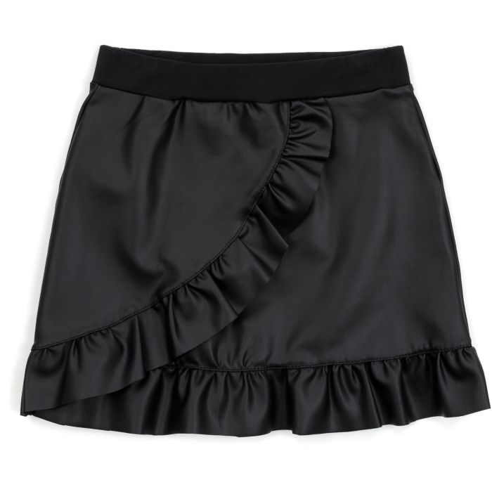 Стильная юбка из эко-кожи с оборкой для юной модницы.