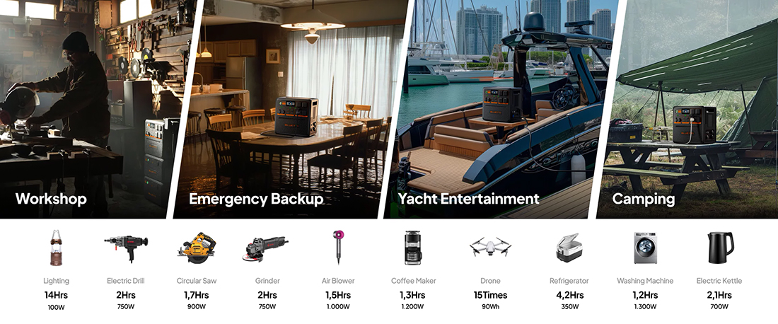 Будьте поражены исключительной выходной мощностью AC240P. Модель без труда справляется с 99% приборов с надежной номинальной мощностью 2400 Вт. Но подождите, есть еще что-нибудь! Активируйте мгновенную мощность до 3600 Вт, а затем запускайте энергоемкие устройства – просто! Пора отказаться от бензинового генератора, потому что AC240P всегда готов к любым сценариям.