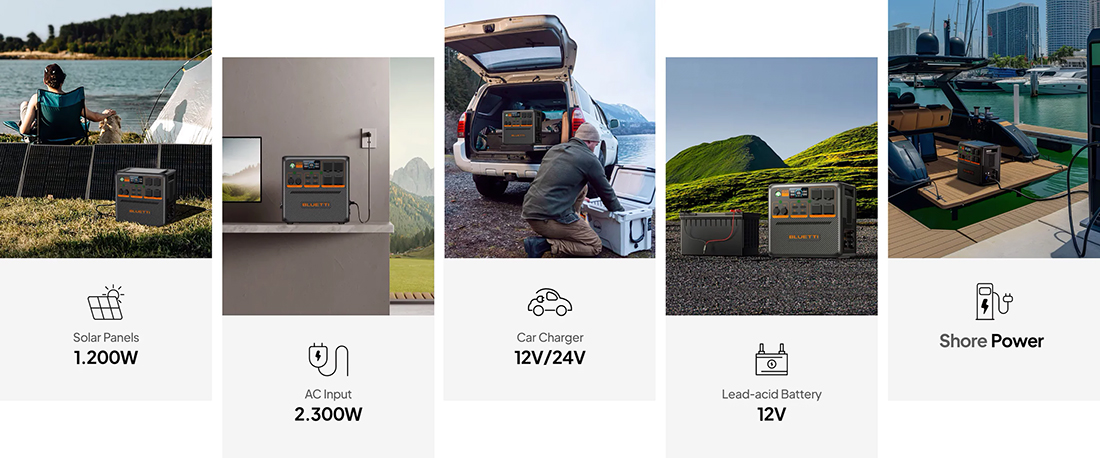 Устали от множества движений, чтобы зарядить свою электростанцию? Попрощайтесь с хлопотами! С AC240P вы все под контролем. Независимо от того, питаться ли вы солнечной энергией с помощью солнечных панелей, подключаетесь к розетке, заряжаетесь энергией в дороге с помощью автомобильного зарядного устройства или даже подключаетесь к свинцово-кислотной батарее или береговому источнику питания, AC240P гарантирует, что вы всегда будете готовы к новым приключения с полным зарядом. Для зарядки от автомобильной станции требуется дополнительный кабель-переходник. Как подключить: береговая розетка → кабель адаптера → зарядный вход AC240P.