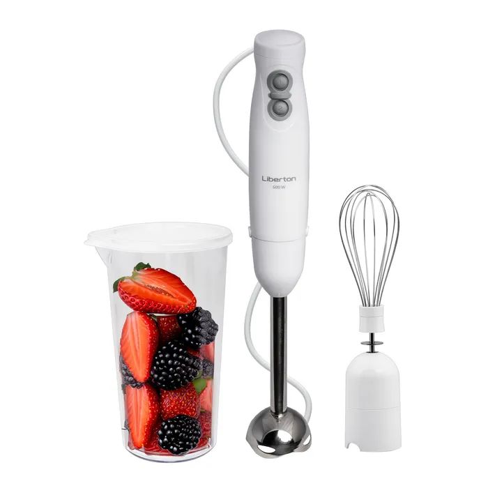 До комплекту входять додаткові аксесуари, які роблять використання цього блендера ще більш зручним та різноманітним. Мірний стакан об'ємом 0.6 л та чопер надають максимальну свободу у виборі рецептів, розширюючи можливості для кулінарної творчості. Легко вимірюйте необхідну кількість інгредієнтів без зайвих зусиль.
