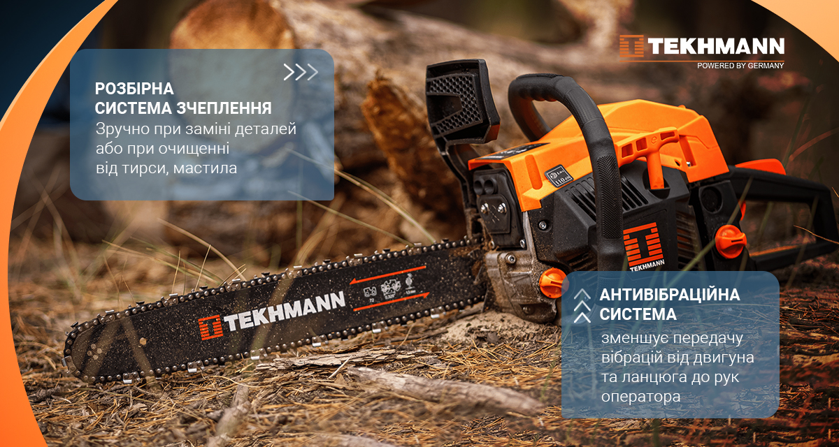 Розбірна система зчеплення полегшує обслуговування інструмента, а антивібраційна система значно знижує втому рук при тривалій роботі. Завдяки зубчастому упору в дерево ви отримаєте кращий контроль над розпилом та точність у кожному русі.