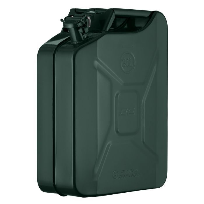 Об`єм - 20 л, Матеріал - метал, Рідина - бензин, дизель, антифриз, Тип кришки - кришка з важелем, Особливості - вертикальні, Товщина стінок - 0.8 мм, Товщина дна - 0.8 мм, темно-зелений, Вага - 3.1 кг
