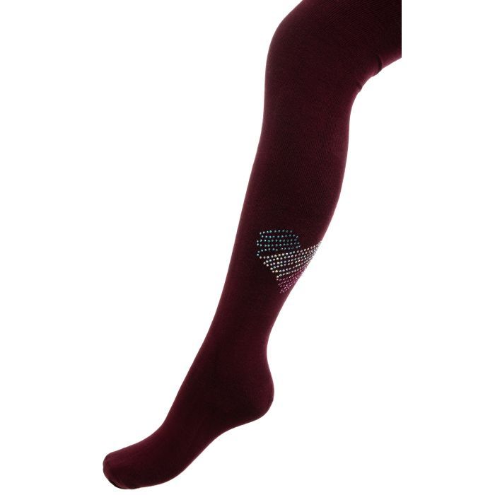 Колготи прикрашені внизу збоку (трохи вище щиколотки) красивим сердечком з різнокольорових страз.