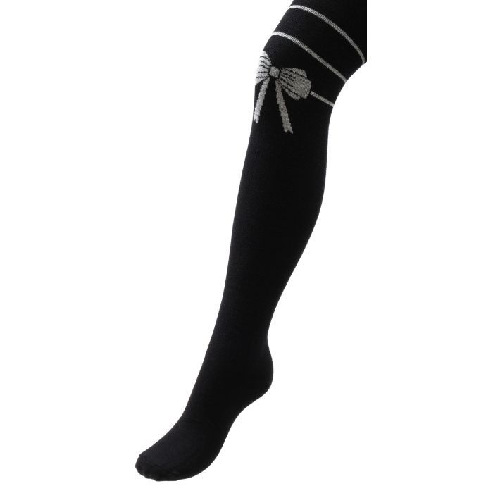 - Чудові фабричні однотонні трикотажні колготи зі зручною посадкою, прикрашені над колінами кількома смужками та акуратним бантиком.