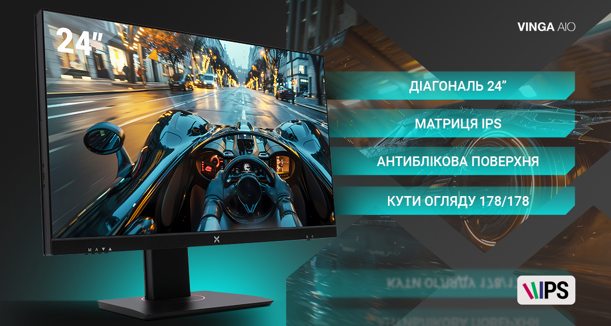Моноблок із 24-дюймовим IPS-дисплеєм забезпечує чітке, насичене зображення з природною передачею кольорів. Завдяки широким кутам огляду 178°/178° картинка залишається якісною під будь-яким кутом, а антиблікове покриття знижує навантаження на очі та дозволяє комфортно працювати навіть при яскравому освітленні.