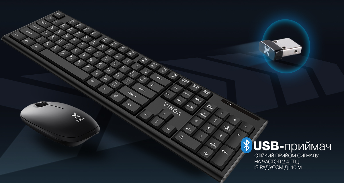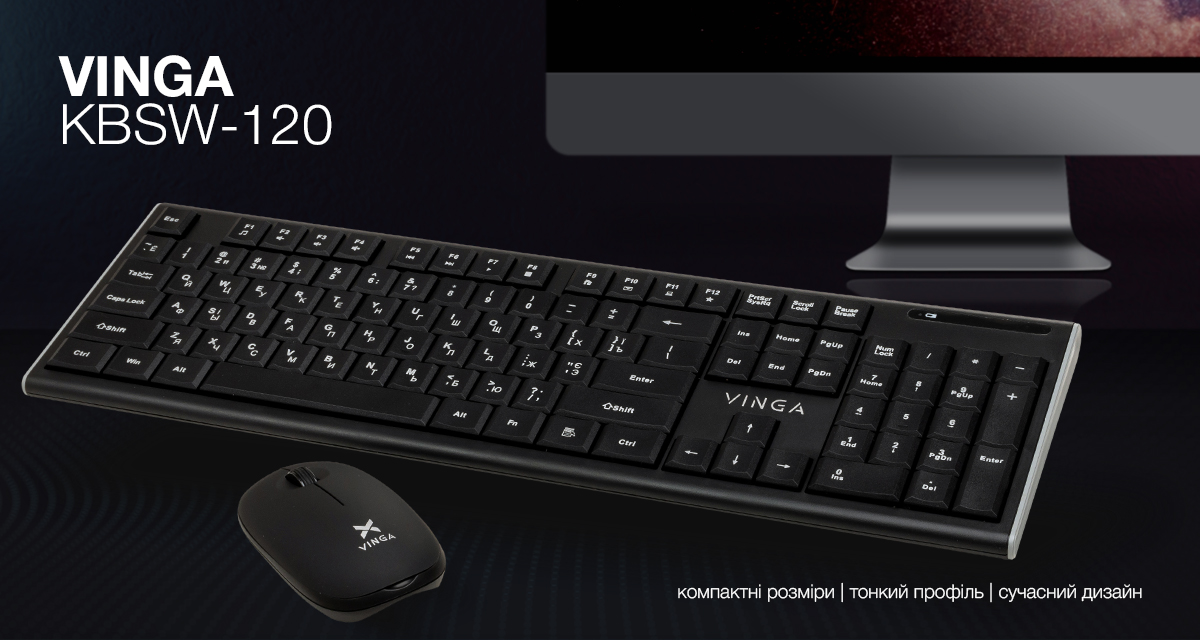 Бездротовий комплект Vinga KBSW-120 складається з клавіатури та миші, що привертають погляд компактним розміром, тонким профілем і сучасним дизайном. Ідеальне робоче місце має бути акуратним (нічого зайвого), добре обладнаним (тільки найсучасніші технології) і вільним від сторонніх шумів. Бездротовий комплект Vinga зробить його саме таким.
