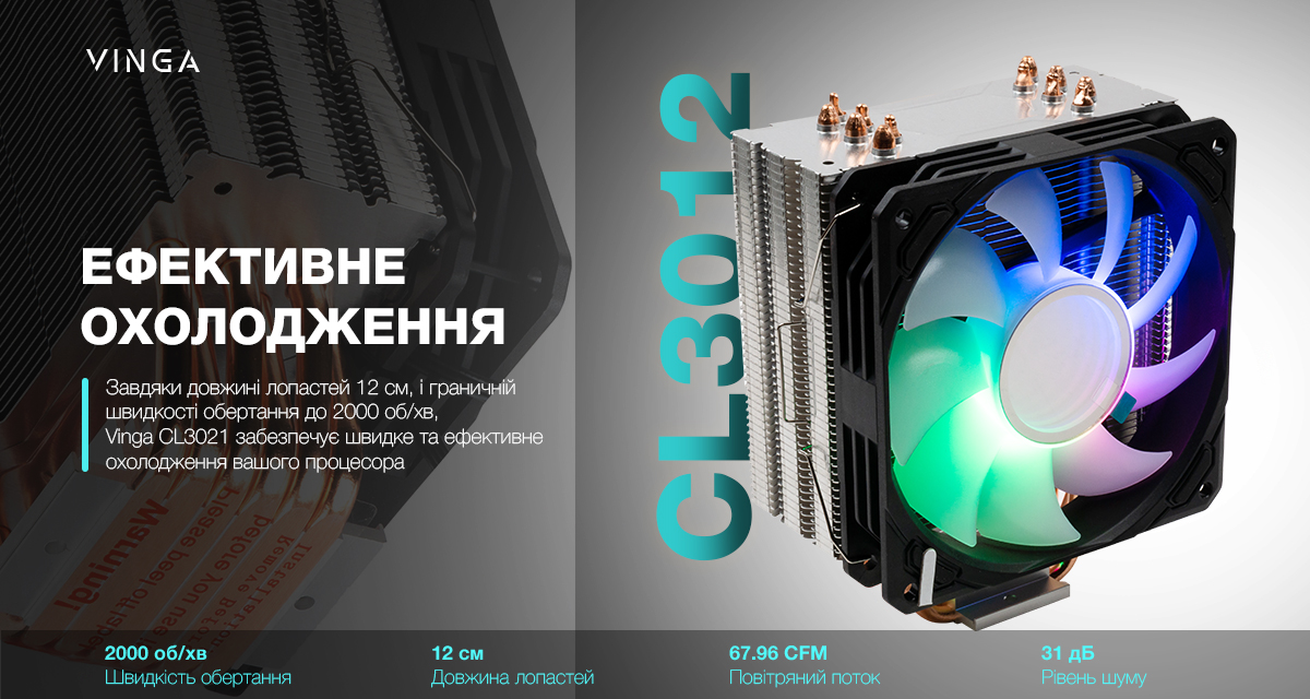 Vinga CL3012 — універсальний вибір, який сумісний як із процесорами AMD, так і з Intel. Це робить його відмінним рішенням для побудови чи оновлення сучасних систем, забезпечуючи стабільне та надійне охолодження.
