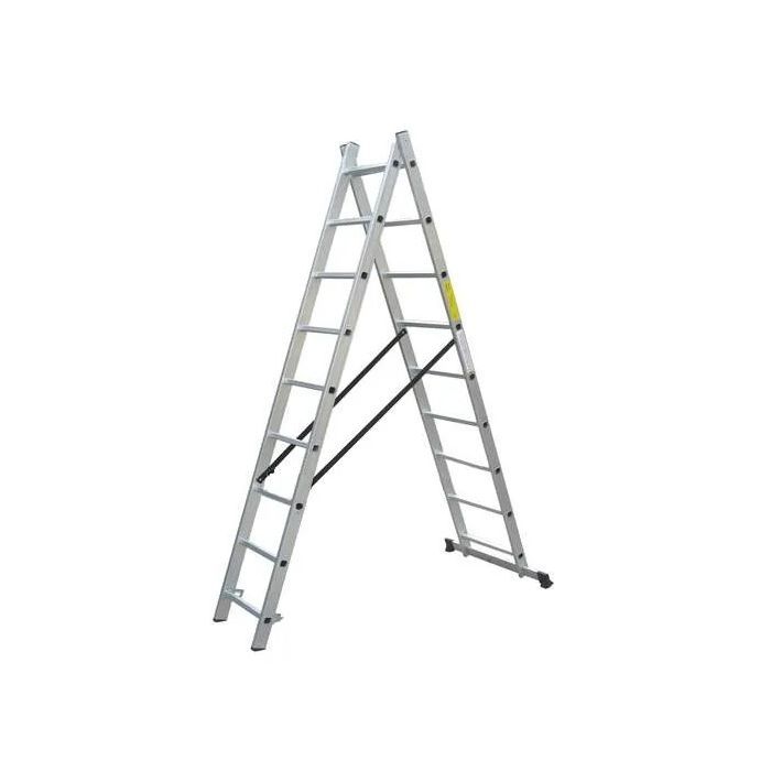 Важить лише 8.6 кг, що робить її легкою в маніпуляціях та дозволяє швидко переміщатися між зонами робіт без зайвих зусиль. Ця драбина має дві секції, усередині яких нараховується 18 сходинок (2х9), надаючи вам впевненість у стабільності та безпеці під час роботи на висоті.