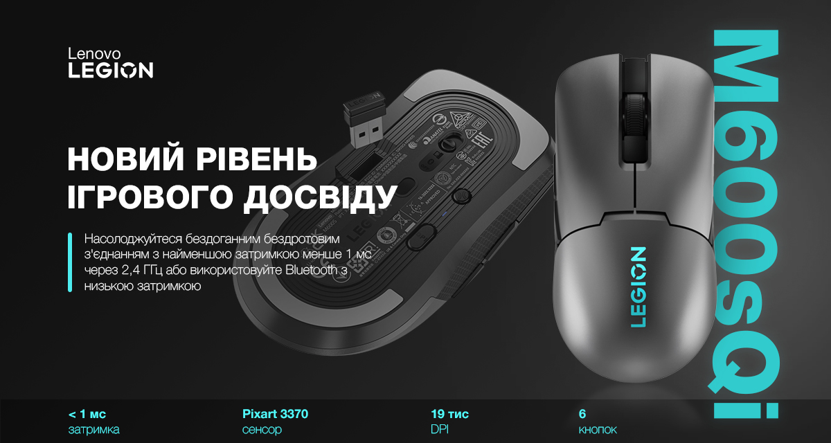 ДетальнішеАналоги Мишка Lenovo Legion M600s Qi Wireless Grey (GY51H47355)