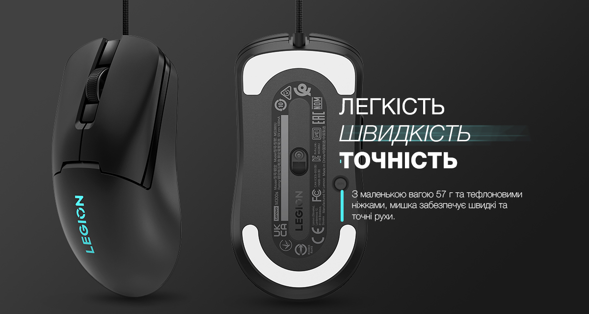 У світі геймінгу швидкість завжди першочергова. З маленькою вагою 57 г та тефлоновими ніжками, мишка забезпечує швидкі та точні рухи. 100% ПТФЕ ніжки гарантують винятковий комфорт, швидке ковзання по килимку та точний контроль.