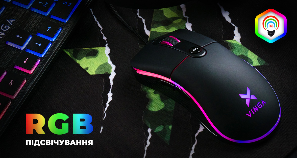 Яскраве RGB підсвічування, матове покриття та широке прогумоване коліщатко додають мишці ефектності і відображають її геймерський характер.