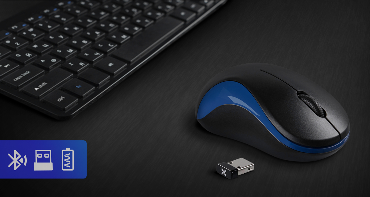 Живлення забезпечують елементи типу ААА. Синхронізація роботи аксесуара з комп'ютерним пристроєм забезпечується за допомогою USB-ресивера.