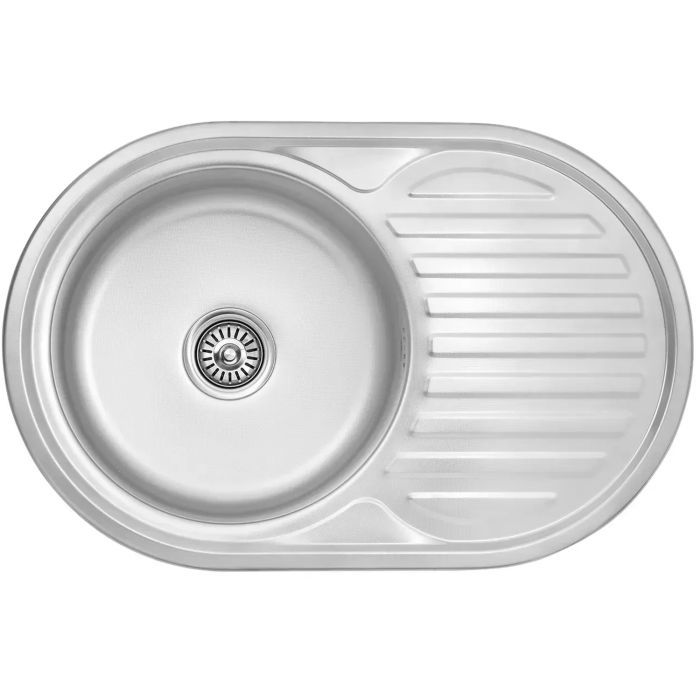Тип установки - врізна, Кількість раковин - 1 основна, Форма - овальна, Матеріал - нержавіюча сталь, Колір - сріблястий, 3.55