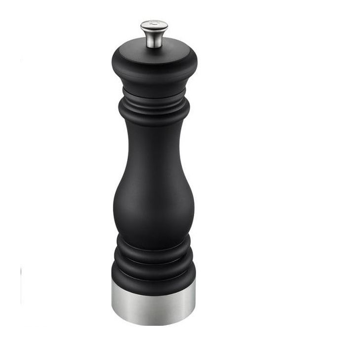 Млинок для спецій Gefu Flavio з плавним регулюванням - це стильний дизайн, гарантія високої якості, компактний функціонал. Елегантний матовий чорний класичний дизайн виглядає особливо стильно і впишеться у будь-який кухонний дизайн. Легко і рівномірно перемелює кристали солі або перець горошком.