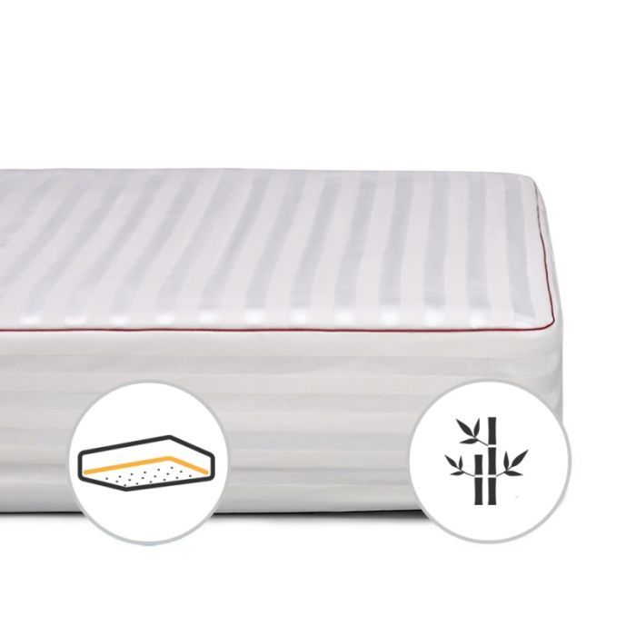 Легкість, невагомість і пружність, м'якість і пишність наматрацнику з бамбука надає його пориста волокниста структура. Бамбукове волокно, яке чимось нагадує шовк за якістю, має унікальні властивості: антибактеріальний ефект, м'якість, зносостійкість, довговічність. Воно не накопичує статичний заряд, не утримує запахи, сприяє нормальній терморегуляції й повітрообміну.