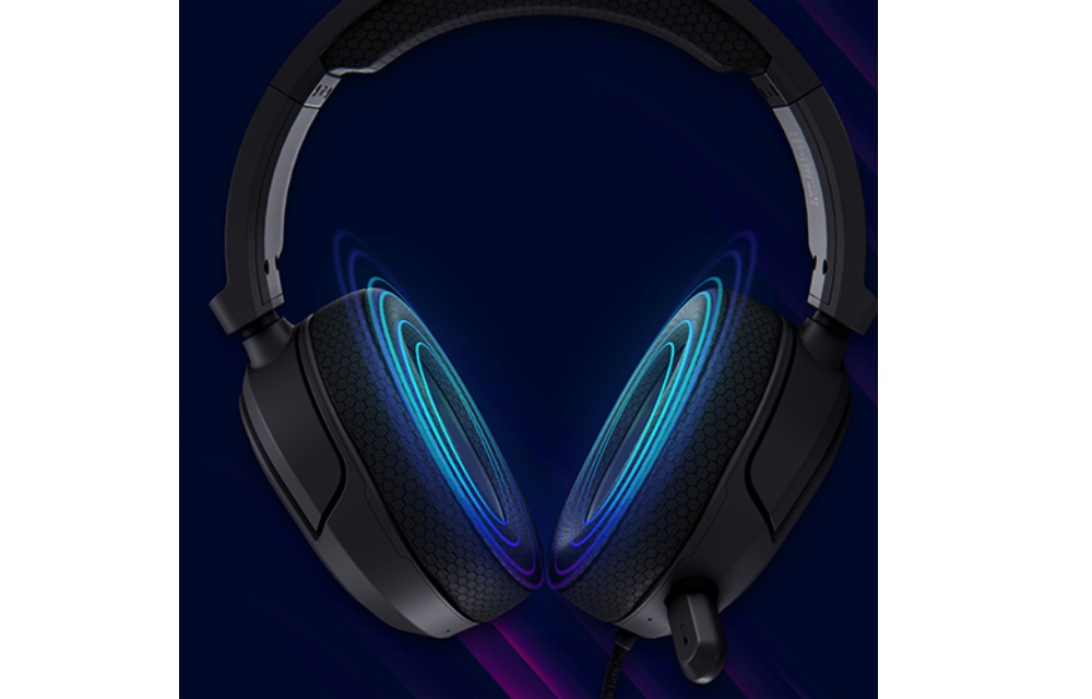 Чаші навушників обертаються для зручності зберігання та користування, а тканинні амбушури забезпечать комфорт під час тривалих ігрових сесій.