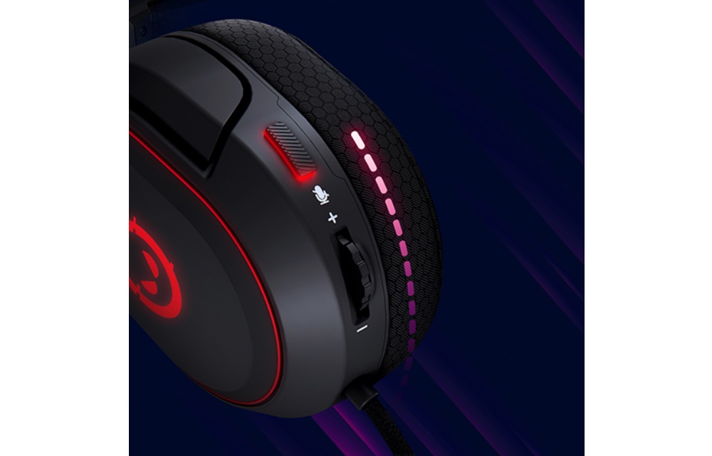 Kaya 460 справді виділяється! Ви можете керувати RGB підсвічуванням. Оголів’я укріплене металевими частинами та повністю регулюється. Завдяки невеликій вазі, всього 329 грамів, ви не відчуватимете гарнітуру на голові.