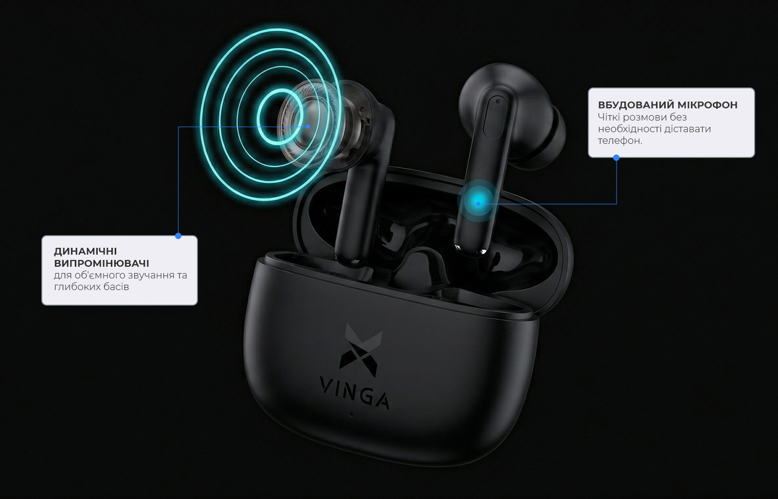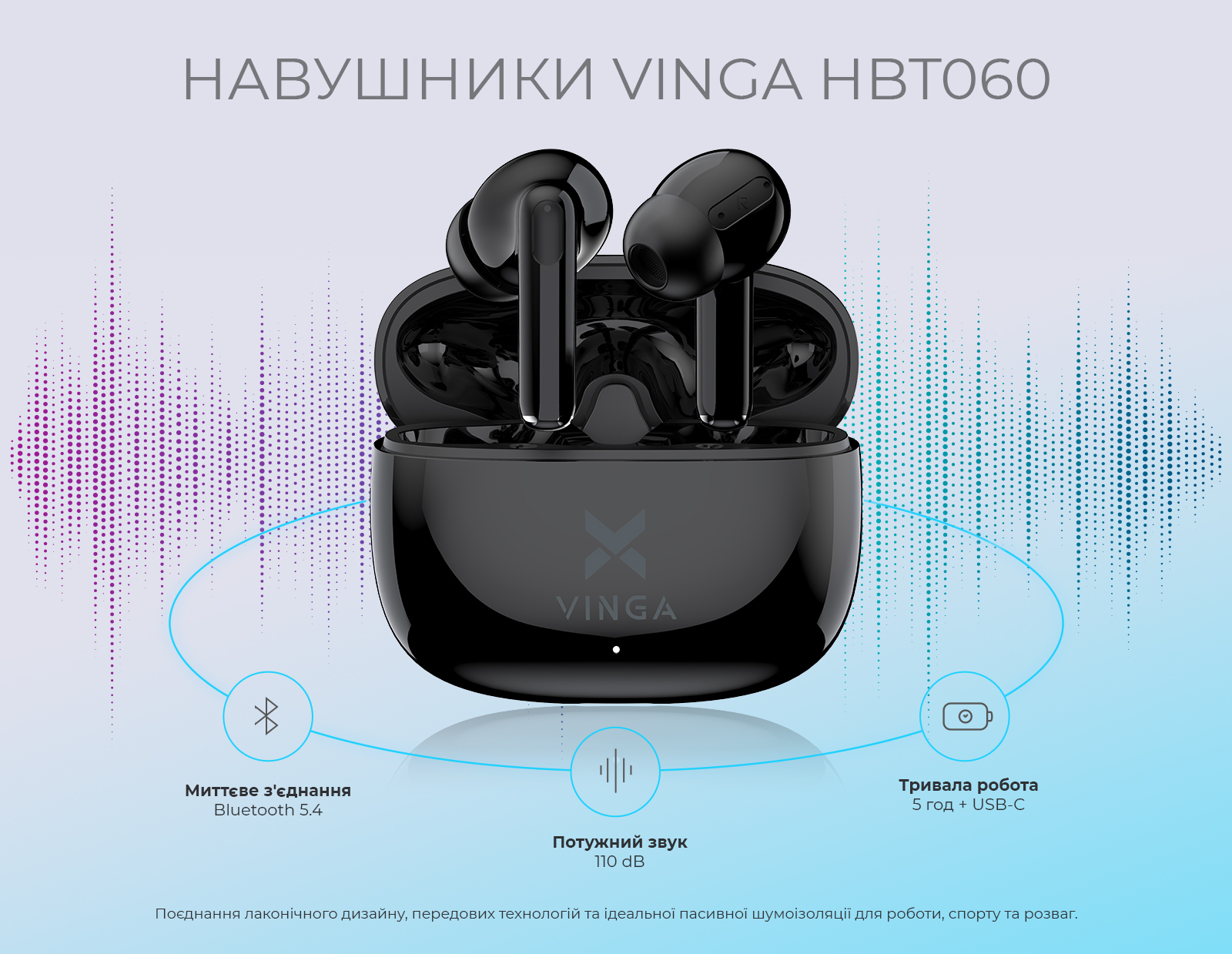 Опис Навушники Vinga HBT060 Bluetooth Black (HBT060BK)