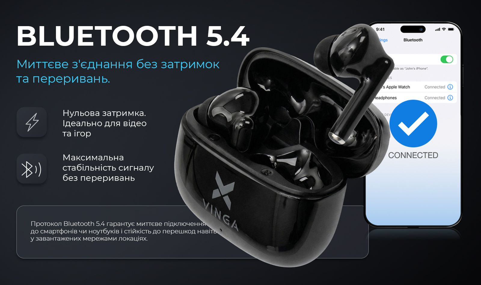 Характеристики Навушники Vinga HBT060 Bluetooth Black (HBT060BK)