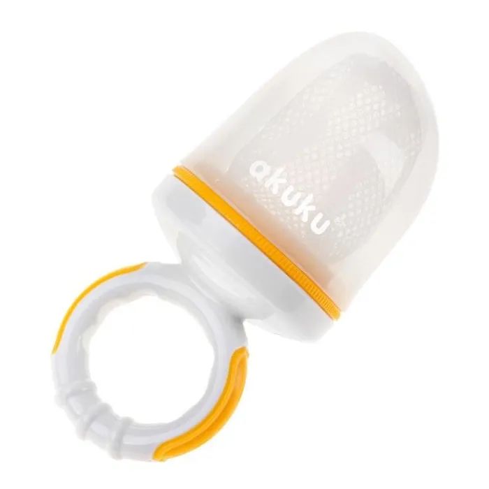 Годівниця для свіжих продуктів Akuku дозволяє вашому малюку насолоджуватися смачними закусками, не турбуючи вас. Завдяки простій сітчастій конструкції ця зручна годівниця для прорізування зубів дозволяє малюкам безпечно гризти продукти. Просто помістіть шматочок фрукта, овочів або навіть м'яса в сітчастий мішок і закрийте його. Дитина може жувати, смоктати та пробувати на смак усі корисні продукти, при цьому з неї виходять тільки маленькі шматочки, що легко засвоюються, що знижує ризик задухи. Це також розумна альтернатива іграшці для прорізування зубів. Годівниця для свіжих продуктів має яскраву, зручну ручку, за яку малюк може триматися, що робить його першим реальним кроком на шляху до незалежності від годування.