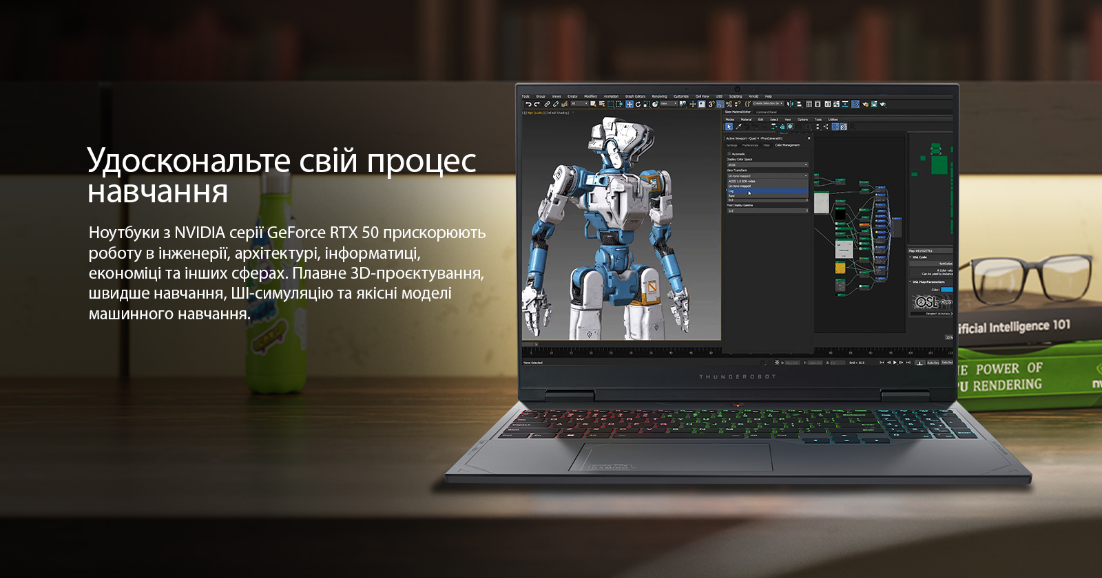 Потужні ноутбуки з NVIDIA серії GeForce RTX 50 прискорюють роботу найпопулярніших програм в інженерії, архітектурі, інформатиці, науці про дані, економіці та інших сферах. Це означає більш плавне 3D-проєктування та моделювання, швидше навчання, ШІ-симуляцію та якісні моделі машинного навчання. Крім того, із ексклюзивним доступом до платформи NVIDIA Studio з творчими інструментами та технологіями, а також Max-Q Technologies, які оптимізують час автономної роботи, акустику та інші параметри, ви отримуєте ідеальний ноутбук для навчання та поза ним.