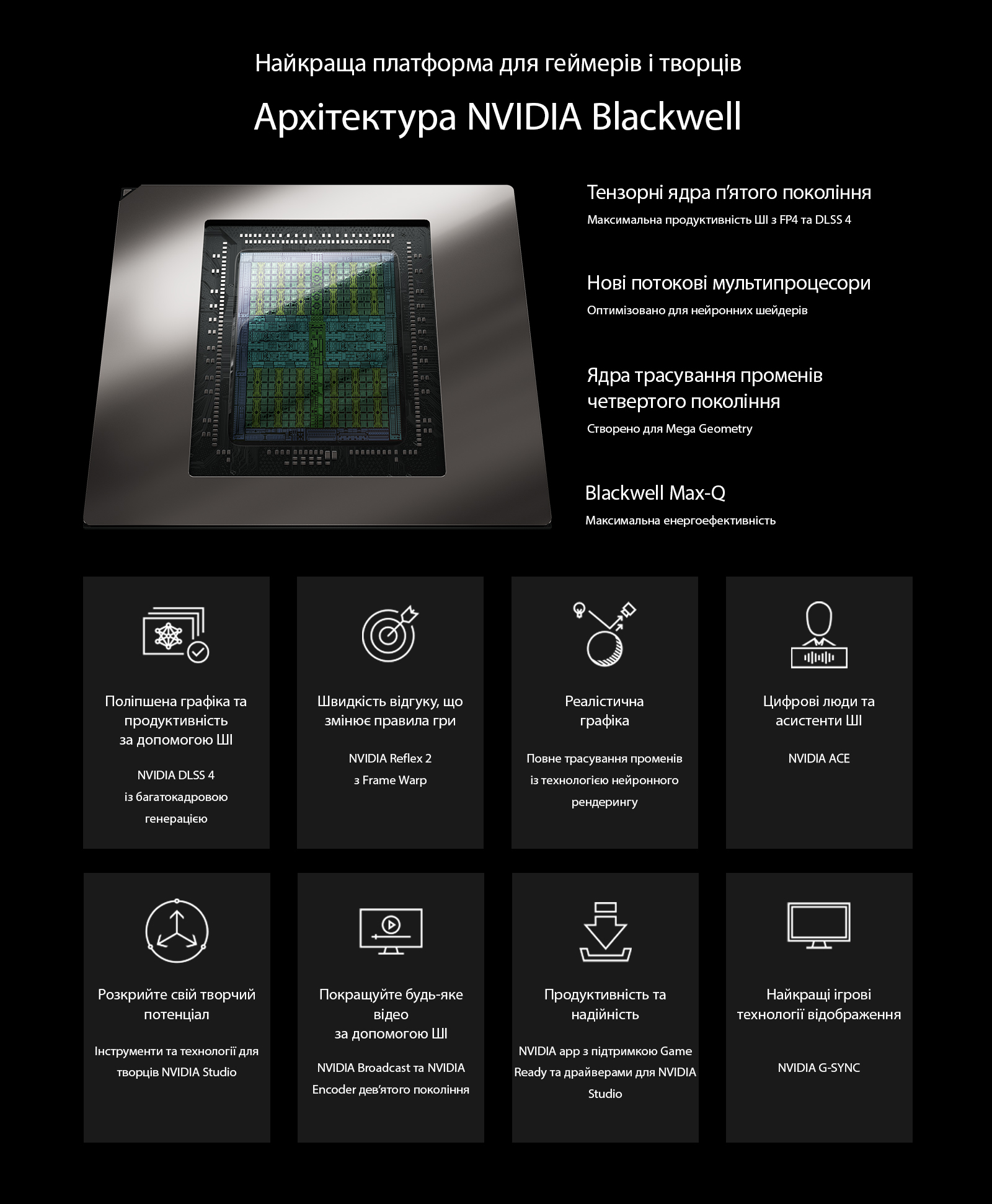 Найкраща платформа для геймерів і творців. Архітектура NVIDIA Blackwell