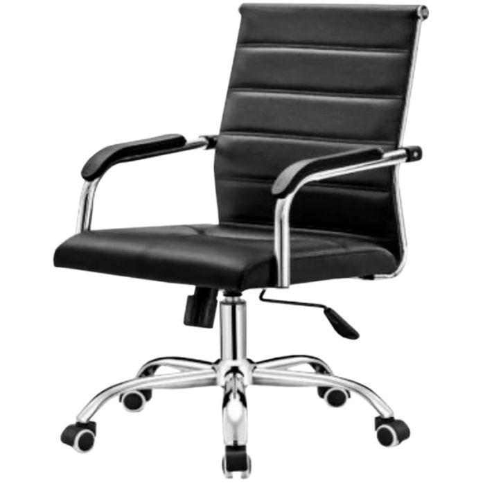 Оббивка крісла виготовлена з екошкіри, що не лише додає зовнішньому вигляду елегантності, але й підвищує зносостійкість виробу. Металевий каркас та хрестовина забезпечують високу міцність конструкції та здатність витримувати навантаження до 100 кг. Крісло має продуману променеву опору з діаметром основи 64 см, яка чи не найкраще забезпечує стійкість і маневреність завдяки колесикам.
