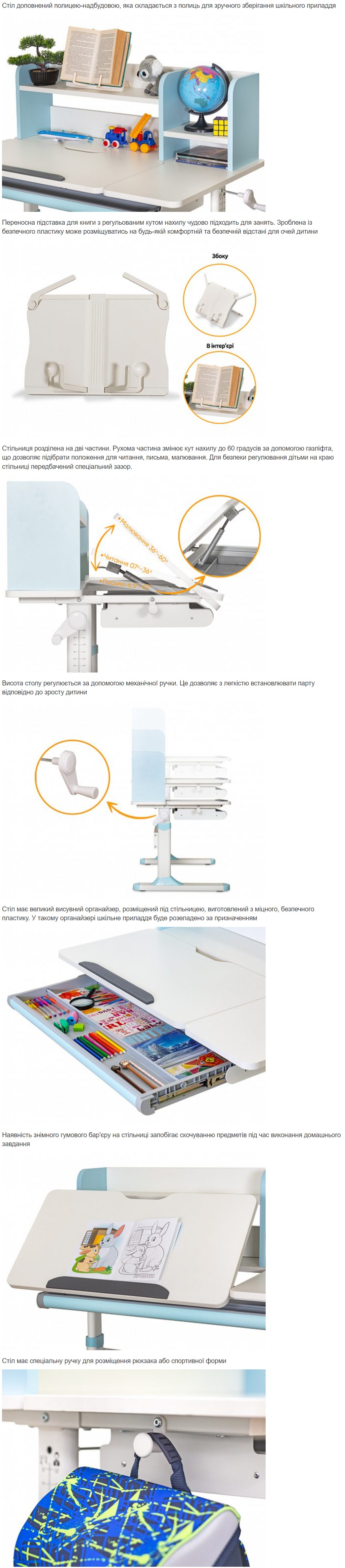 | Комплектація | висувний органайзер, гачок для портфеля, підставка для книг, поличка-надбудова |