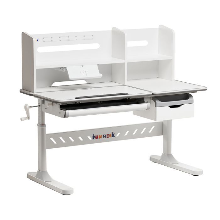FunDesk Fiore II - сучасний та якісний робочий стіл, що ідеально підходить для навчання та хобі дитини у будь-якому віці. Стіл має масу можливостей з регулювання стільниці, стійку металеву основу з можливістю підстроювання під нерівності підлоги, а також різноманітні колірні рішення.