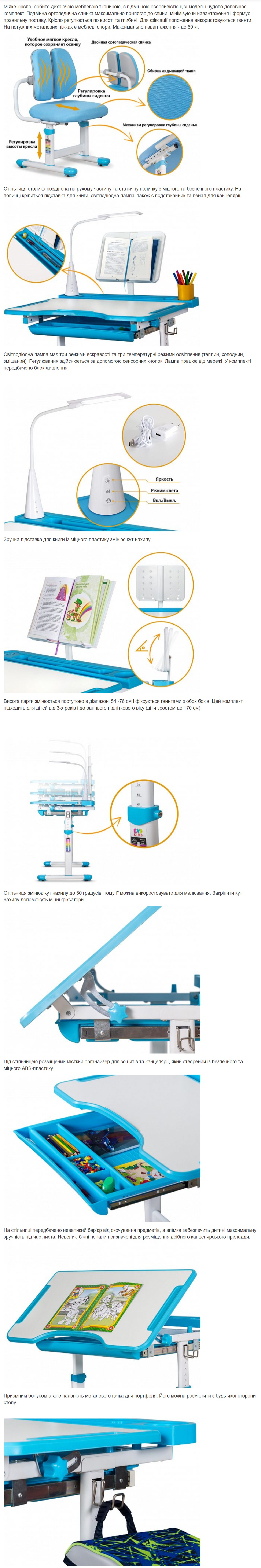 | Особливості | з лампою, з похилою стільницею, зі стільцем в комплекті |