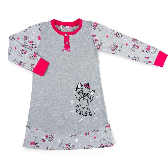 Сорочка зручного А-силуету, з довгим рукавчиком на манжеті, виконана з м'якого, дуже приємного на дотик, тонкого, бавовняного турецького трикотажу, з додаванням невеликого % еластану для підтримки форми. Перёд прикрашений якісною контурною вишивкою котика. Горловина кругла, оброблена м'якою трикотажною бейкою. Застібка - планка на два гудзики. Подаруйте донечці цю затишну, чудову річ і Вашій дитині під час приємних снів буде забезпечений затишок і комфорт.
