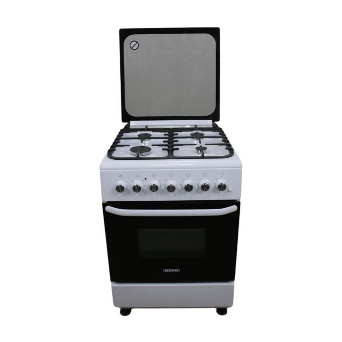 Ця комбінована плита пропонує унікальне поєднання газових конфорок та електричної духовки. З чотирма конфорками різної потужності – від 0.9 до 2.5 кВт – ви можете ефективно готувати будь-які страви, що потребують різної інтенсивності нагріву. Передня права конфорка потужністю 2.5 кВт швидко розігріє сковорідку чи каструлю, а потужність задньої правої у 0.9 кВт ідеальна для повільного томління.
