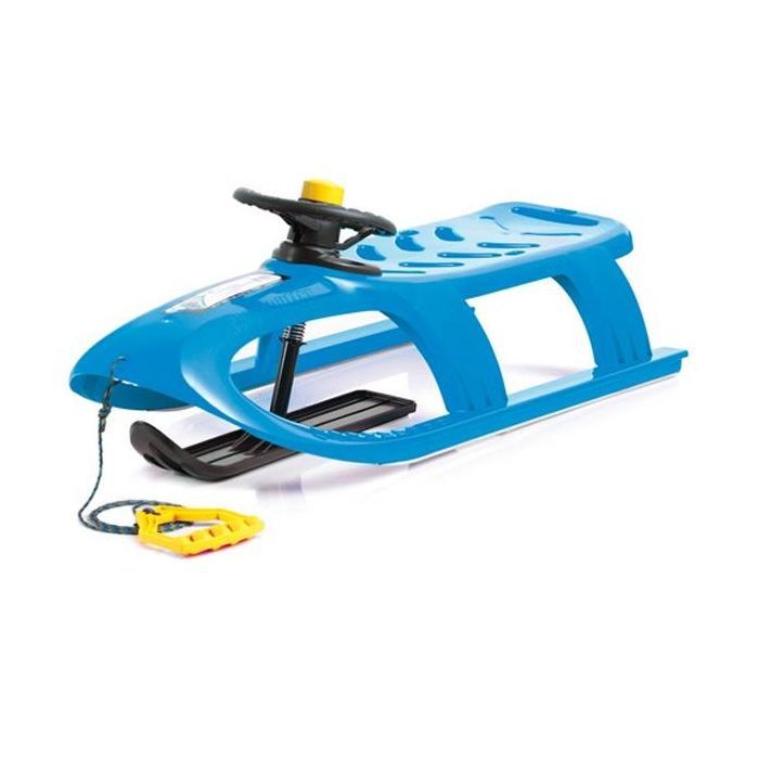 Санки дитячі пластикові з передньою лижею управляються поворотом керма.