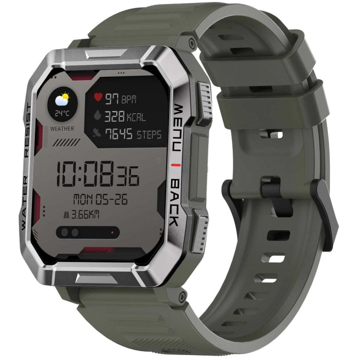 Корпус годинника з цинкового сплаву та сталі забезпечує стійкість до зовнішніх впливів, включаючи випадкові удари. Використання протиударного скла Panda, стійкого до відбитків пальців, захищає екран від подряпин, надаючи пристрою довговічність та презентабельний вигляд.