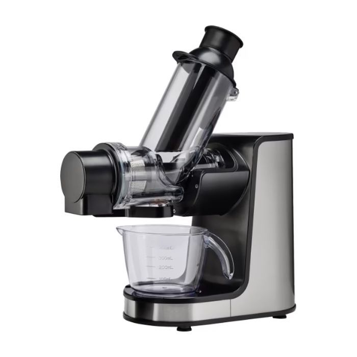 Тип - шнекова, потужність - 200 Вт, об'єм резервуару для жмиху - 0.8 л, об'єм резервуару для соку - 0.9 л, габарити - 36.5 х 26.8 х 34 см, вага - 4.5 кг, Колір - сріблястий