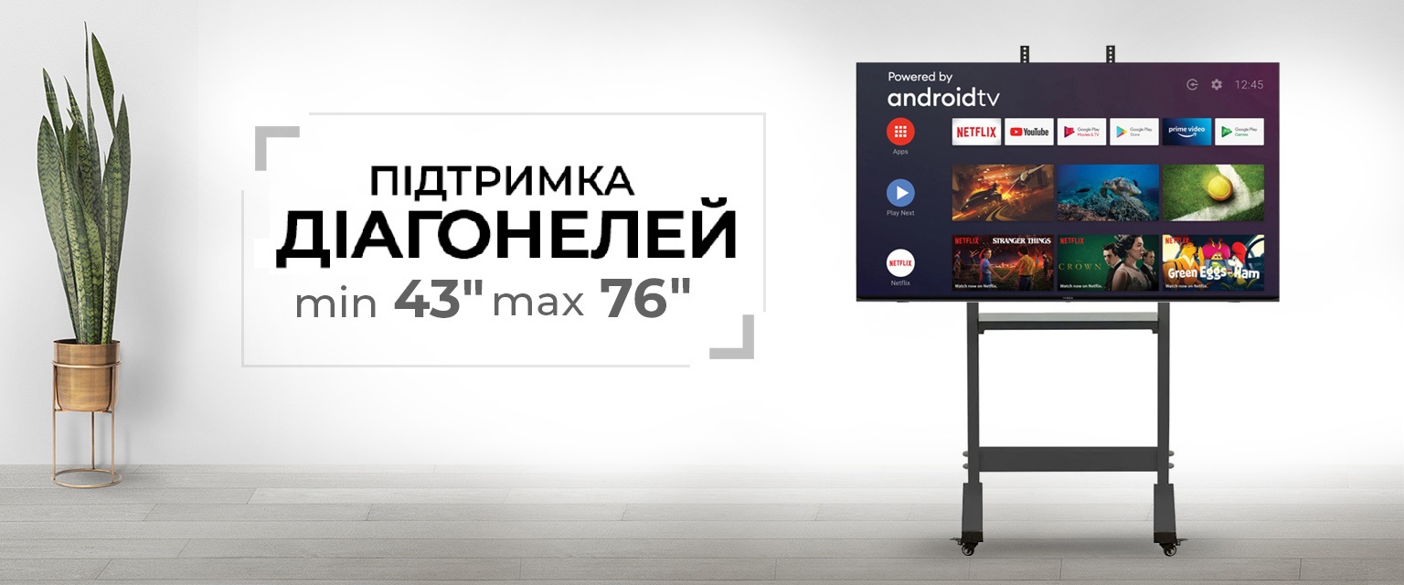 | Діагональ екрану | 43", 45", 46", 47", 47.6", 48", 48.4", 49", 50", 51", 52", 54.6", 55", 56", 58", 59", 60", 61", 63", 64", 64.5", 65", 70", 74.5", 75", 76" |