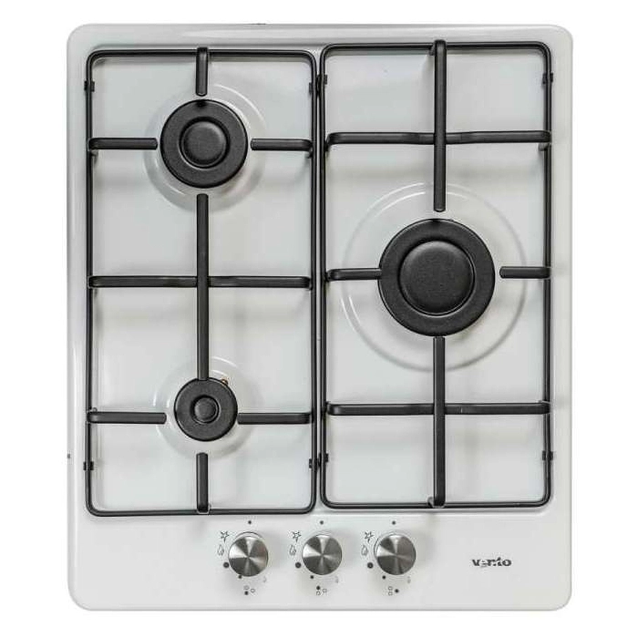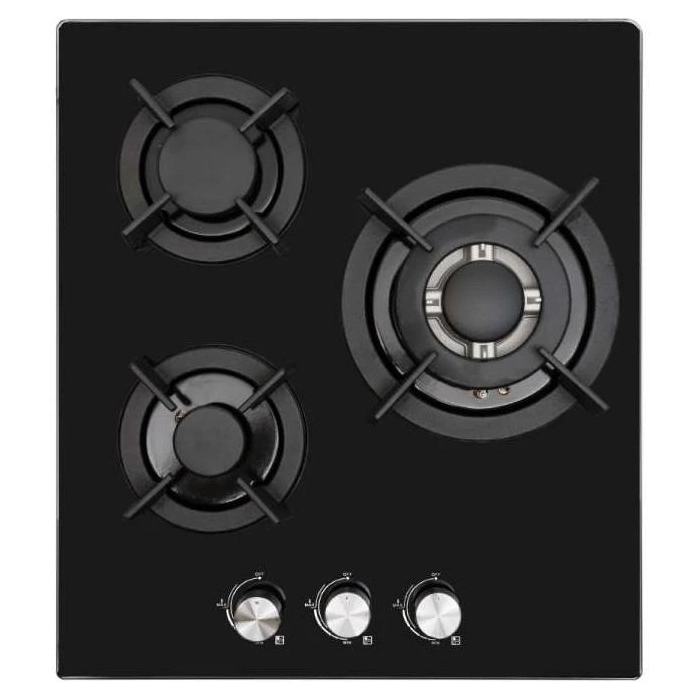 Тип поверхні - газова, нержавіюча сталь, кількість конфорок - 3, Задня ліва 1.7 кВт, Передня ліва 55 мм/ 1 кВт, права: потужністю 3 кВт, Управління - механічне, Газ-контроль - так, Електропідпал - так, Матеріал решіток - чавун, бутан/зріджений, 220 В, Розміри ніші для вбудовування - 5 х 41 х 48 см, 7.5 кг, чорний