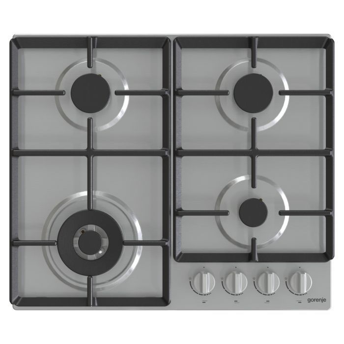Тип поверхні - газова, нержавіюча сталь, кількість конфорок - 4, Передня права 1 кВт, Задня права 1.65 кВт, Задня ліва 1.65 кВт, Передня ліва 3.5 кВт, Управління - механічне, Газ-контроль - так, Електропідпал - так, Матеріал решіток - чавун, природний газ, 220 В, 240 В, Розміри ніші для вбудовування - 56 х 48 х 3.8 см, 10.6 кг, нержавіюча сталь