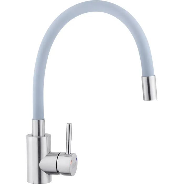 Одноважільний врізний кухонний змішувач (KRM) Odra-C032BLK від Kroner виготовлений із силуміну з покриттям чорного кольору, має поворотний, гнучкий вилив завдовжки 23 см і встановлюється на один отвір із підведенням води за допомогою гнучкої шлангової проводини під діаметр 1/2".